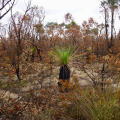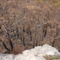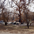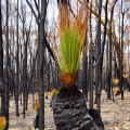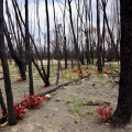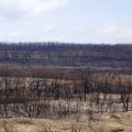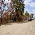Aber dass was ich dann auf fast 100 Kilometern in den Nationalparks zu sehen bekomme ist keine Science Fiction: Verbrannte Erde! Wenn man es nicht selbst ‚erfahren’ hat, könnte es wie eine weitere Meldung in den Nachrichten sein, aber es ist eine wahre ‚Unwirklichkeit‘, die ich erlebe. Ich halte an, um Aufnahmen zu machen, zuerst irgendwie fasziniert, aber je weiter ich vordringe, erfasse ich die schreckliche Realität. Ich höre garnichts, kein Vogel ist zu hören, keine Tiere sind zu sehen. Nur der Wind der durch die verbrannte Landschaft weht, ist zu hören und die Fliegen sind allgegenwärtig — ich glaube die Fliegen wären die ersten, die den Mars besiedeln. Ab und zu eine Ameise oder ein Rabe, der sich am Aas bedient, sind zu sehen. Ich begreife jetzt, dass sehr viele Tiere keine Chance hatten zu entfliehen und die Meldung über Millionen von toten Tieren keine Übertreibung sein kann.