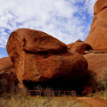Am Mutitjulu Waterhole einen der wenigen permanenten Wasserquellen rund um Uluru haben wir eine Verabredung mit Lady Cecilia, einer alten Aboriginal Frau. Cecilla erzählt uns die Geschichte zweier Ahnenwesen von Kuniya, der Woma-Python, und Liru, der Giftschlange, ihrem Neffen, und läßt uns eintauchen in eine ganz andere Welt. Am Mutitjulu Wasserloch findet ein Kampf statt, der zum Tode von Liru führt. Und tatsächlich erkennen wir ehrfürchtig in den Felsformationen die Spuren der Geschichte und des Kampfes und auf einmal wird der Uluru selbst lebendig für uns. Wir bekommen eine Ahnung davon warum der Uluru und viele andere Orte für die Aboriginals heilige Orte sind. Von nun an ist der Uluru für uns mehr als ein einfacher, nackter, roter Monolith im Outback, es ist ein Ort mit Spirit, der uns teilhaben läßt an der Geschichte von uns Menschen, an einer von Gott inspirierten Schöpfung mit dem Klang von Unendlichkeit.
