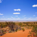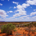 Schon vom Flugzeug aus haben wir große Flächen von Wüste und Buschland gesehen. Die Weite scheint endlos zu sein. Wir fahren etliche hundert Kilometer ohne dass sich die Landschaft wesentlich verändert. Selbst die Wolkenbilder bleiben die gleichen. Der Himmel und die Wolken machen den Eindruck wie gemalt, so klar ist die Luft hier.