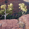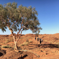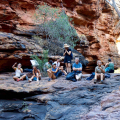 Am dritten Tag fahren wir zum Kings Canyon, auch heute heißt es wieder sehr früh aufstehen, damit wir den Sonnenaufgang im Kings Canyon erleben können und um aber vor allem der extremen Hitze vorweg laufen zu können, die bereits am frühen Mittag einsetzt. Wir laufen den Kings Canyon Rim, einem sehr schönen Walk durch eine wunderschöne Naturlandschaft. Es ist eine überwältigende Erfahrung insbesondere weil unser Guide Christie diese Wanderung mit ihren Geschichten und Kenntnissen bereichert. Ihr spüren wir ihre Liebe zu diesem Land ab. Ihr persönliches Highlight der Rim Walk begeistert auch uns. Christie erklärt uns viel zur Geologie und den Pflanzen, die hier wachsen, sehr spannend auch was sie darüber weiß wie die Aboriginals die Pflanzen genutzt haben.