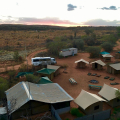 Wir fahren zurück nach Yulara in unser Zeltlager. Nach einem leckerem Abendessen begeben wir uns in die Zelte. Alles sehr komfortabel aber die Hitze, die sich des Tags über angestaut hat weicht erst in den frühen Morgenstunden aus dem Zelt. Mike’s Schmerzen in der Ferse lassen ihn kaum schlafen. Später bedauere ich es, dass ich nicht wenigstens diese eine Nacht mit ihm ‘durchlitten’ habe und stattdessen meinen Schlaf eingefordert habe.